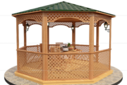 Беседку деревянную 6 граней 3,0х3,45х3,6 открытую Краус поставляют в разобраном виде. Срок сборки занимает всего лишь три дня. Вы можете выбрать один из вариантов цвета крыши - зеленый, красный или коричневый.