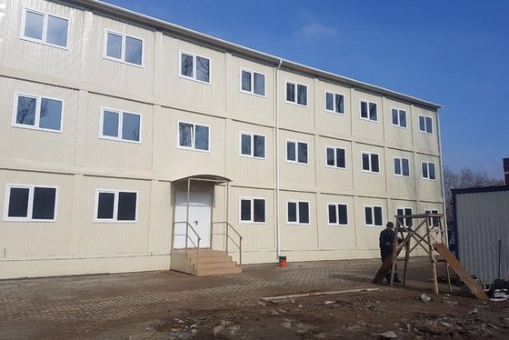 В помещении есть сантехнические блоки (на каждом этаже). Здание оборудовано лестничными маршами. Электропроводка входит в комплектацию модуля. Все элементы модульного здания сертифицированы и произведены на заводе компании.