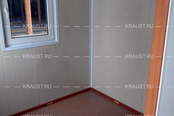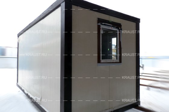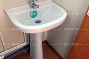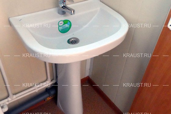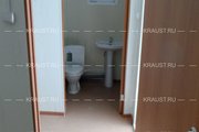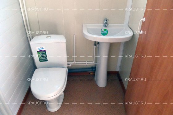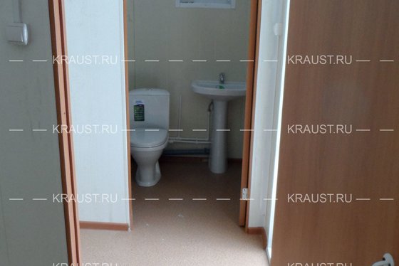 Сантехнический блок контейнер Краус был доставлен  территорию строительного городка. Дополнительно были установлены душ, туалет, раковина, зеркало, 2 конвектора для отопления сооружения и фен.