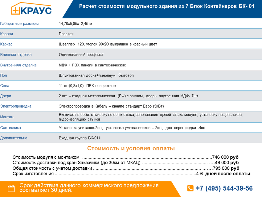 Модульное здание из 7 БК-01