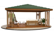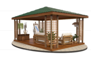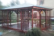 Беседка не только красивая, но и надежная. Каркас изготовлен из бруса, что делает ее долговечной. Крыша и полы выдерживают большую нагрузку. Сборка беседки производится в течении трех дней - и она полностью готова к эксплуатации.