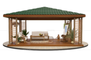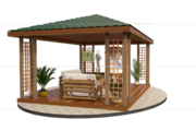 Внутренняя и внешняя отделка включены в комплект и представляют собой декоративные рейки, которые являются не только красивыми, но и надежными. Каркас беседки изготовлен из бруса, что делает ее более прочной и долговечной.