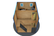 Два этажа соединены лестницей с площадкой и имеют две изолированные друг от друга комнаты, что очень удобно, так как в одной из них можно устроить проживание, а в другой устроить склад или кухню.