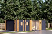Прочный и надежных хозблок, изготовленный на базе 4-х 20-футовых контейнеров. Каркас выполнен из легированной стали, а для эстетичности снаружи обшит планкеном с обработкой защитным составом и с применением специальной системы крепления без видимости наружных элементов крепления. Хозблок окрашен снаружи краской RAL 7024, а внутри помещения – краской RAL 9003.