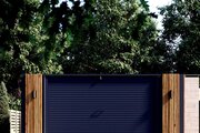 Каркас выполнен из высокопрочной легированной стали. Наружная отделка хозблока выполнена из планкена с обработкой защитным составом. Гараж хозблок окрашен снаружи краской RAL 7024. Утепление стен 150 мм минеральная вата. Внутри помещения отделка – имитация бруса. На полу ламинат в комнатах, в гараже металлический лист чечевица. Въезд в гараж оборудован автоматической роллетой-воротами. 3 окна стандартного размера 0,81 м и 1 окно панорамное 22. Проведена винтажная электрика Bironi.