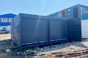 Хозблок, выполненный на базе 10-футового сорского контейнера. Прочная и надёжная конструкция с толщиной стен, пола и потолка 2,5 мм высокопрочной легированной стали. Снаружи окрашен в цвет «графит», внутри – в белый цвет. Оборудован антивандальной роллетой для удобной эксплуатации. На полу установлена влагостойкая фанера 12 мм и линолеум.