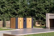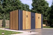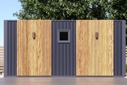 Надежный, высокопрочный хозблок на базе морского контейнера 20 футов. Наружная отделка выполнена из планкена, обработанного защитным составом. Окраска эмалью в цвет "светлый дуб" в 2 слоя. Оборудован двумя открытыми секциями, антивандальной роллетой, а также ПВХ окном. Проведена электрика.