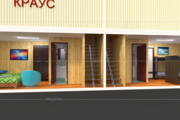 Придорожный мотель на 16 номеров Краус - вместительная гостиница с комфортабельными номерами. Она имеет два этажа, и на первом, и на втором есть по две секции по 4 номера в каждой из них. Лестница на второй этаж внутренняя – металлическая. Номера полностью оснащены для комфортного проживания постояльцев, внутри есть санузел с душем и туалетом, тумбочки, шкаф. Также из каждого номера есть выход на улицу, что очень удобно - не нужно идти через всю гостиницу.