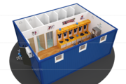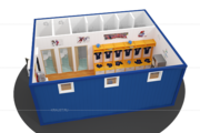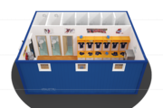 Раздевалка для хоккеистов Краус изготовлена из двух блок-контейнеров БКСП и имеет размер 8,00 х 4,90 х 2,65. Данная модель предназначена специально для хоккейной команды и оснащена всем необходимым для максимального комфорта спортсменов. В раздевалке есть индивидуальные шкафчики для хоккеистов, два туалета и пять душевых кабинок, огороженных шторой. По желанию можно установить кулер с водой и кофейный автомат.
