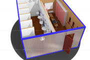 Эта крупногабаритная бытовка выполняет функции раздевалки с душем и идеально подойдет для обслуживания бригады строителей.
