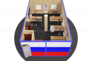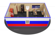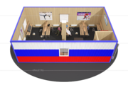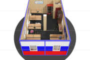 Эта спортивная раздевалка, выполненная в патриотических цветах для конькобежцев, оснащена электрической ЕВРО проводкой, защиту которой гарантирует установленное УЗО на 2,5 А.