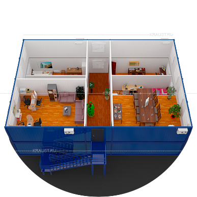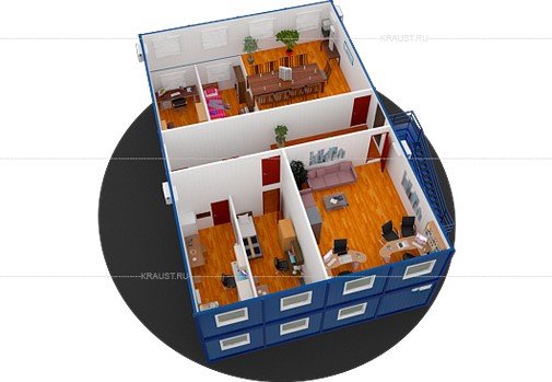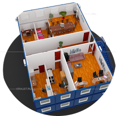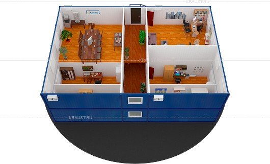 Вы можете использовать это здание как офисное здание для инженерного состава на месте строительства, для прорабов и строителей. Тут могут проходить совещания и планерки, встречи с руководством и инвесторами. Также данный продукт позволяет...