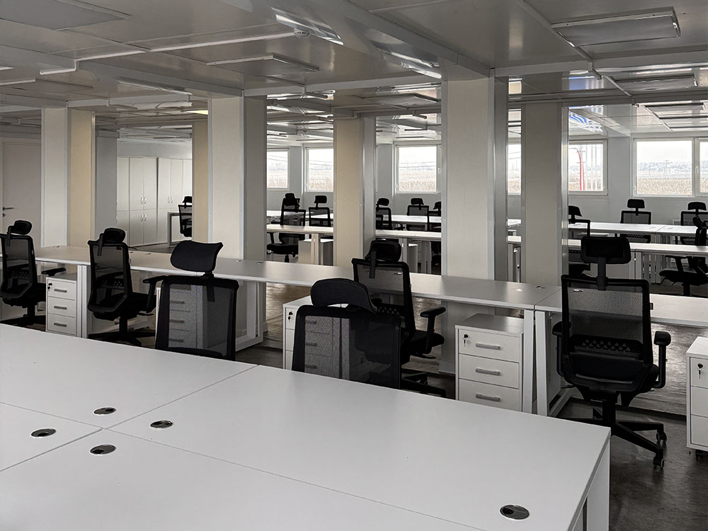 5000 кв. м крытых и 20 000 кв. м открытых площадей, оснащенных всем необходимым технологическим оборудованием, и 100 профессиональных и опытных сотрудников позволяют нам производить и отгружать заказчикам 200 сборно-разборных контейнеров в месяц (3000 кв. м зданий).