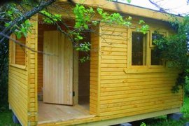 Деревянный домик возводится быстрее обычного дома и при этом на него не затрачивается столько денежных средств. Ведь изготовление дачной бытовки происходит из экономичных материалов.